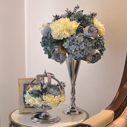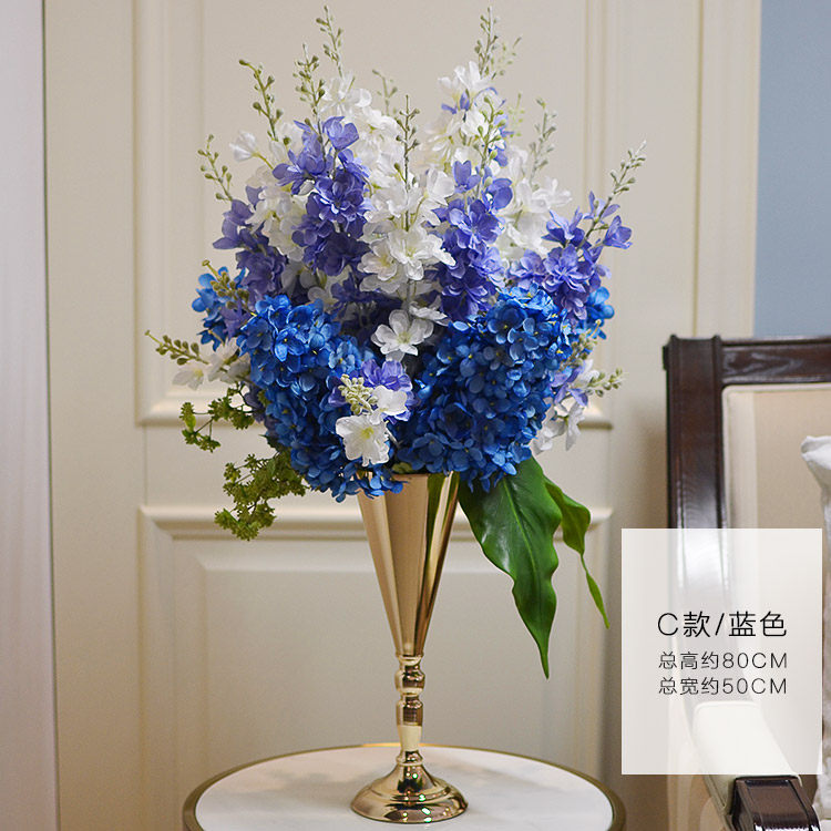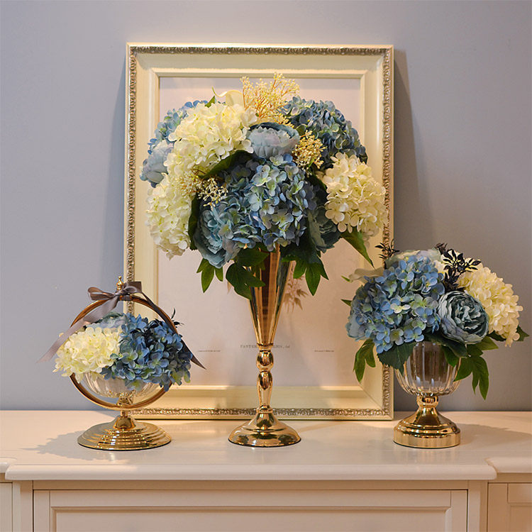 欧式美式高档客厅仿真花花艺套装蓝色 样板间餐桌装饰花假花绣球
