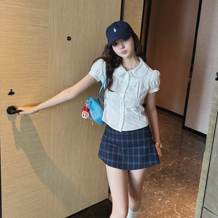 【汤元家sd 限时特价 现货秒发】短袖衬衫女新款修身显瘦上衣