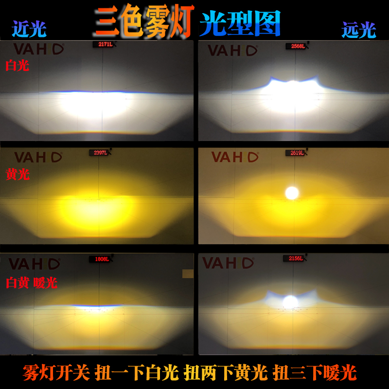 汽车三色雾灯总成LED激光双光透镜改装超亮射灯远近光3寸专用通用