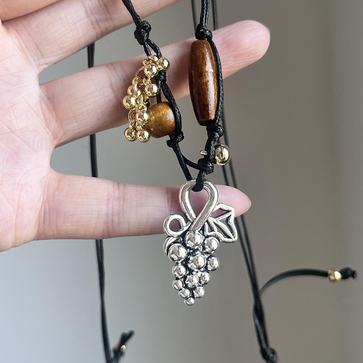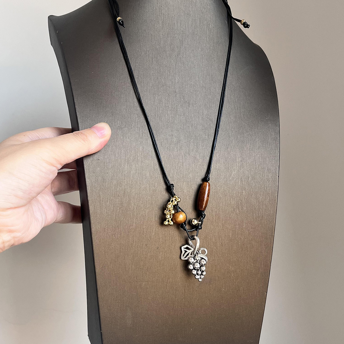秋冬长款葡萄吊坠木质项链配饰女