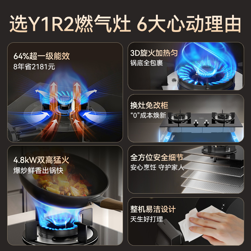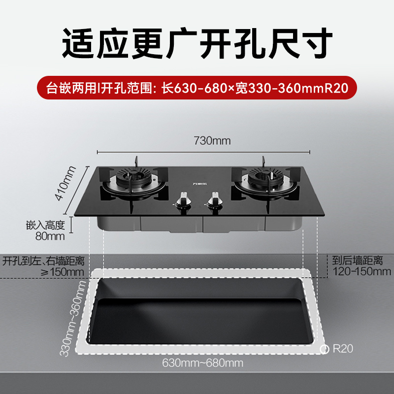 万家乐Y1R2燃气灶双灶嵌入天然气炉台AY5G液化台式煤气灶家用C2T1
