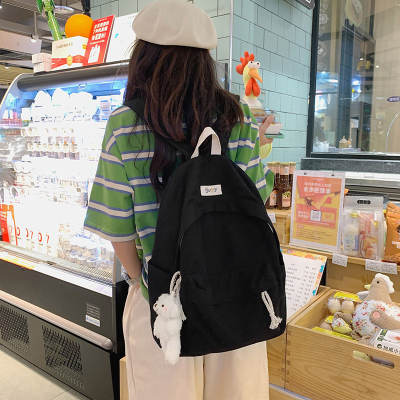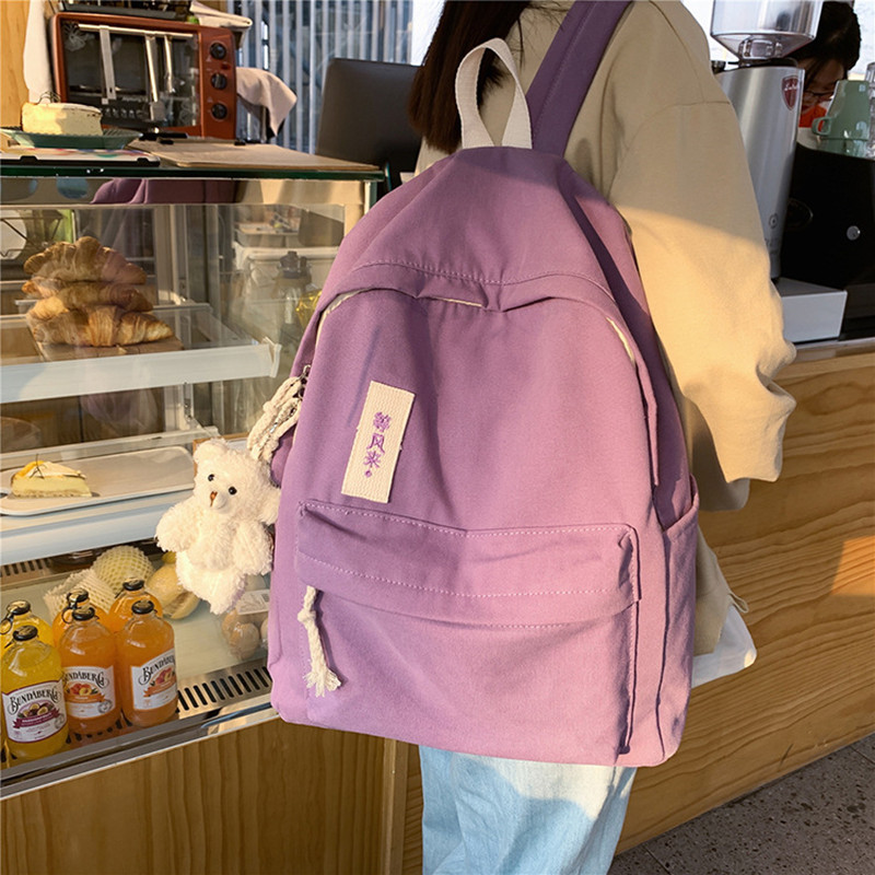 日系韩版小清新少女校园双肩包简约休闲帆布女大学生书包高中背包