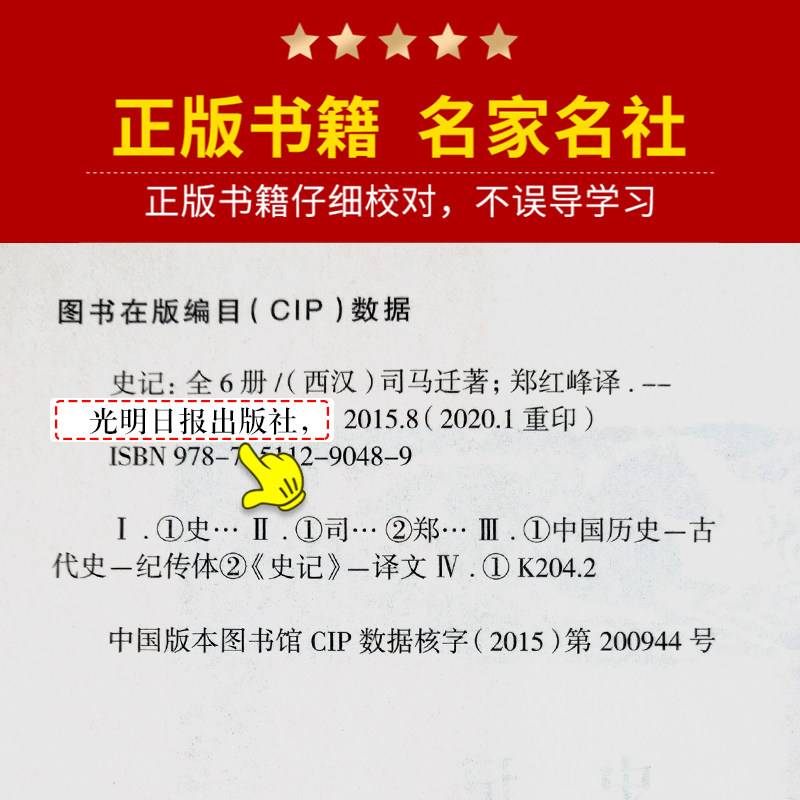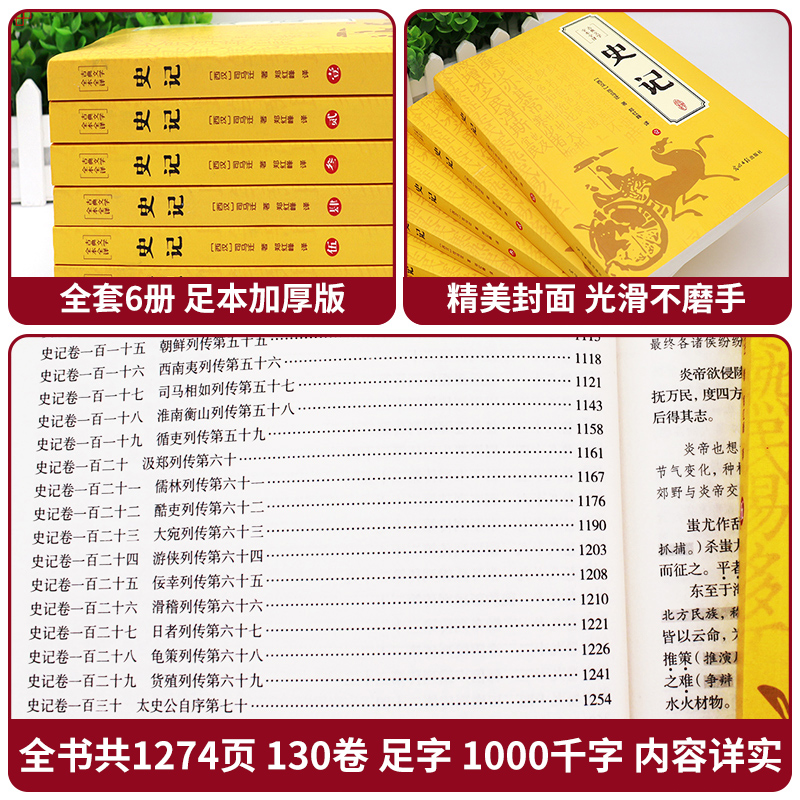 【全套6册】史记全册正版书籍 中国通史青少年版历史类书籍文言文白话文原版完整小学生五年级必读24史初中高中生版推资治通鉴大全