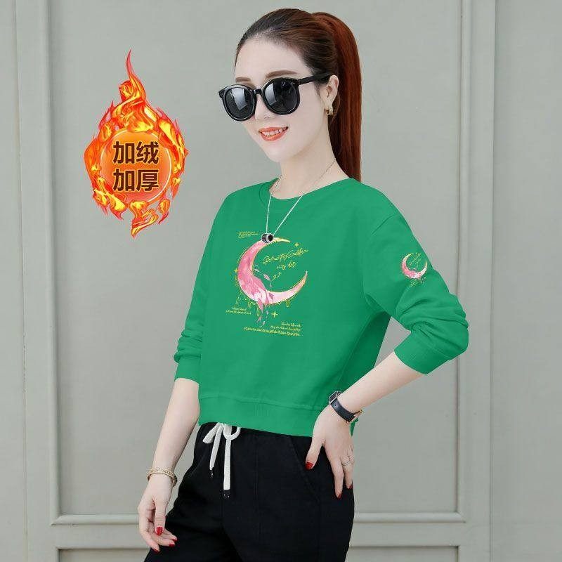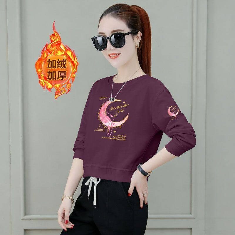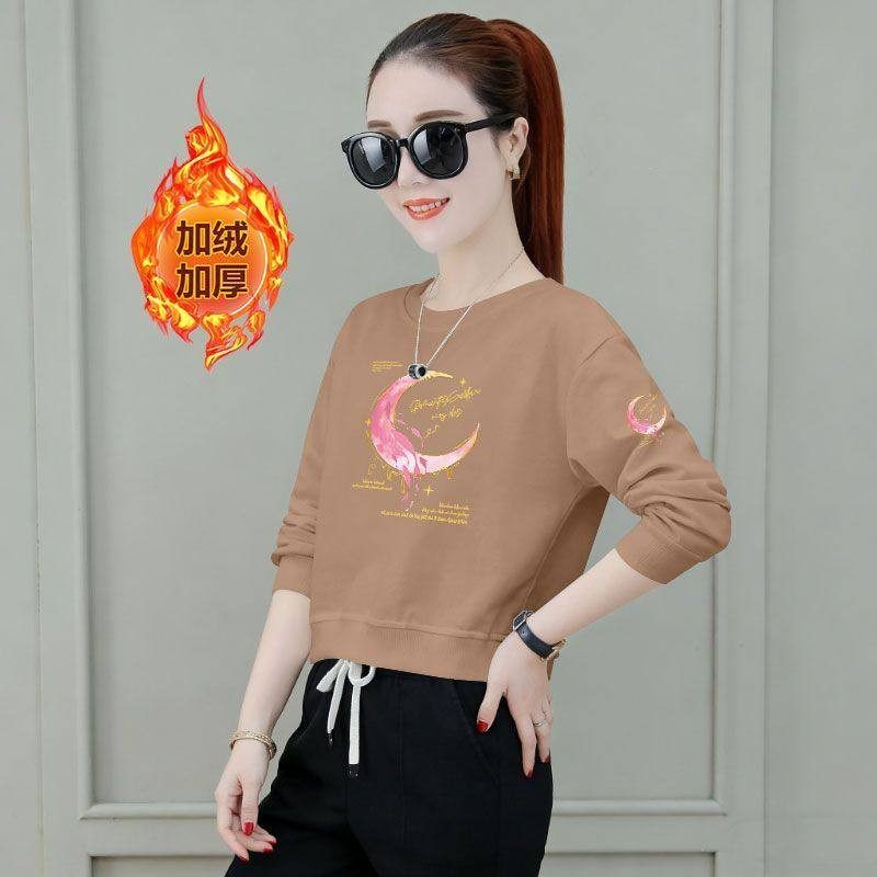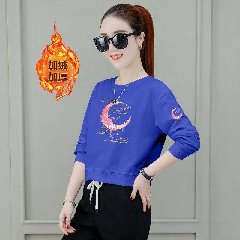 秋冬韩版短款高腰卫衣女加绒加厚时尚洋气潮流百搭小个子印花上衣