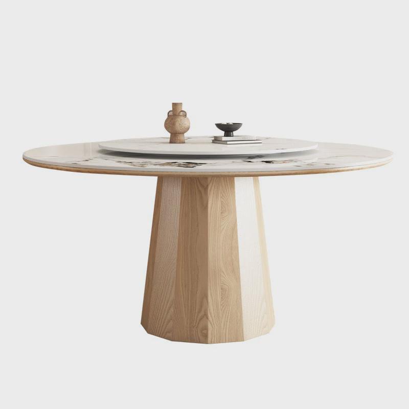 北欧圆形餐桌现代简约小户型家用圆桌奶油风实木岩板圆餐桌椅组合