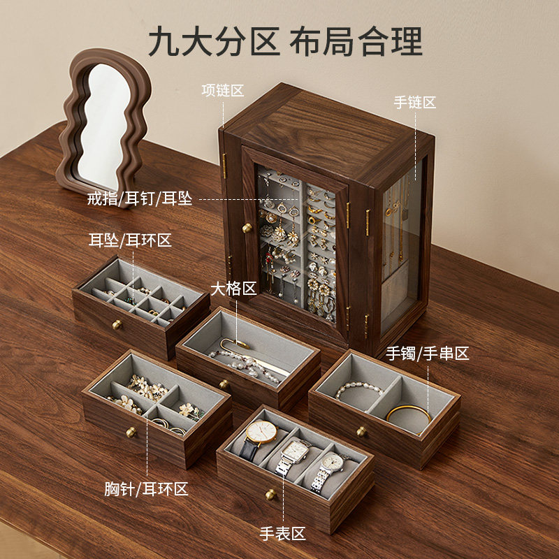 实木创意首饰盒高档精致饰品珠宝项链大容量多层收纳盒结婚礼物