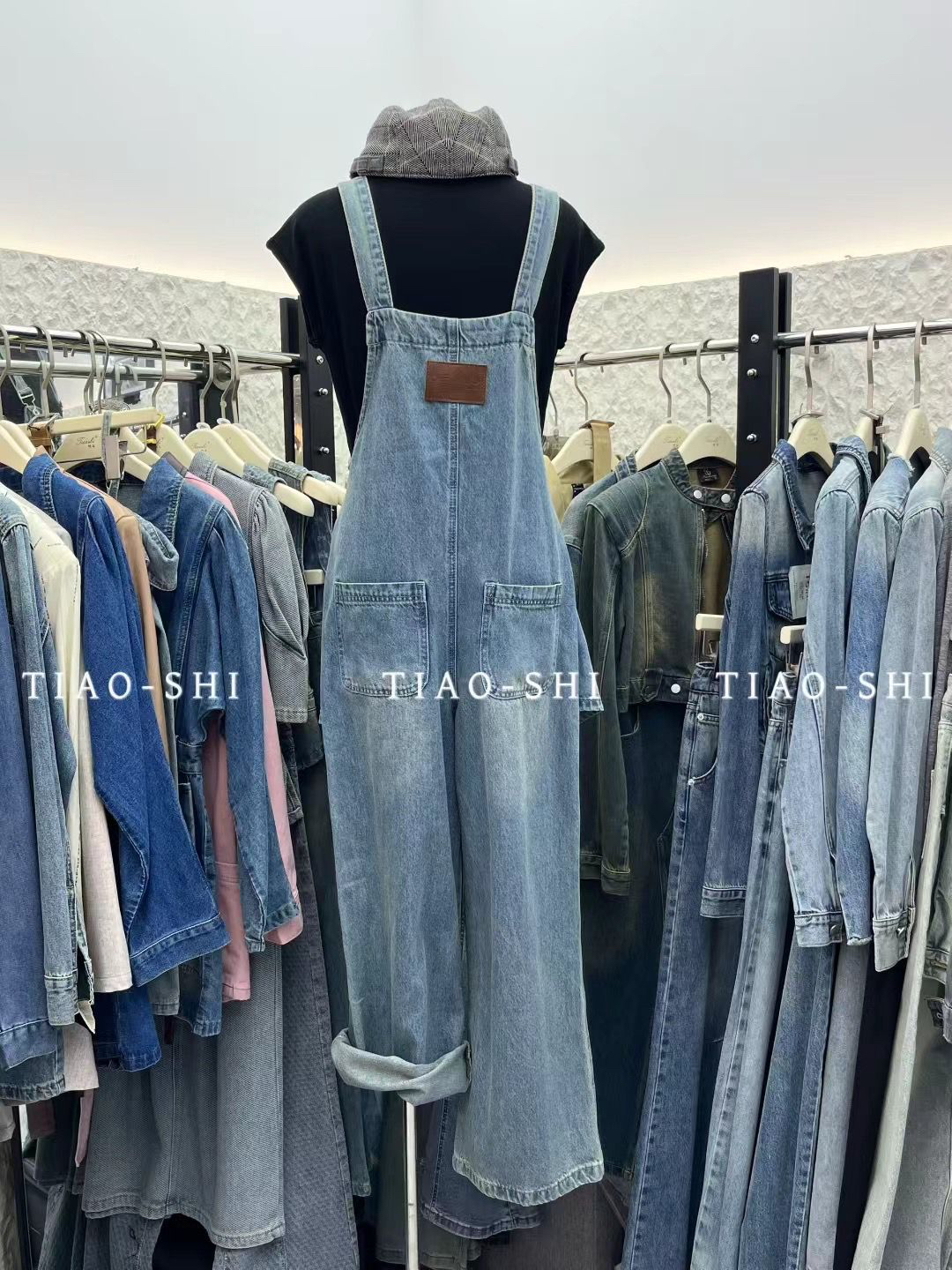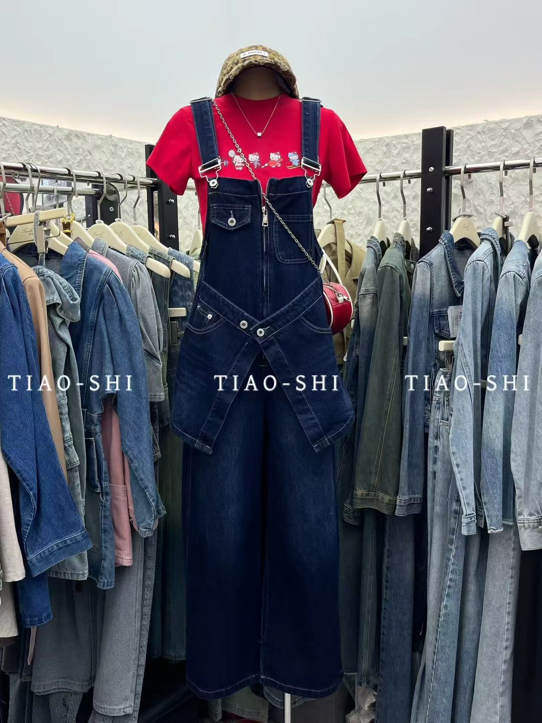 欧洲站2025秋冬新款复古牛仔背带裤不规则显瘦工装裙小众连体裤子