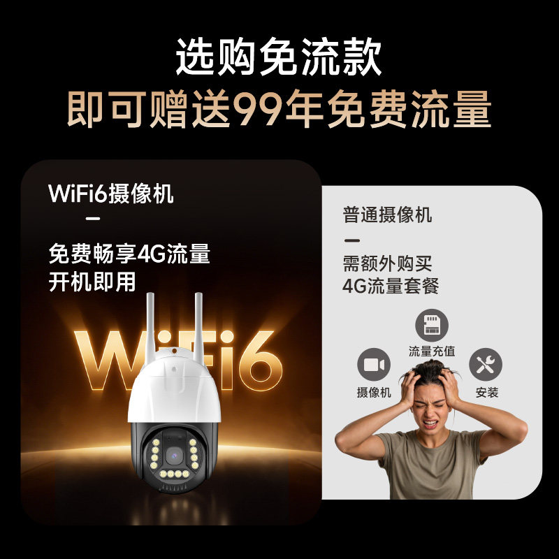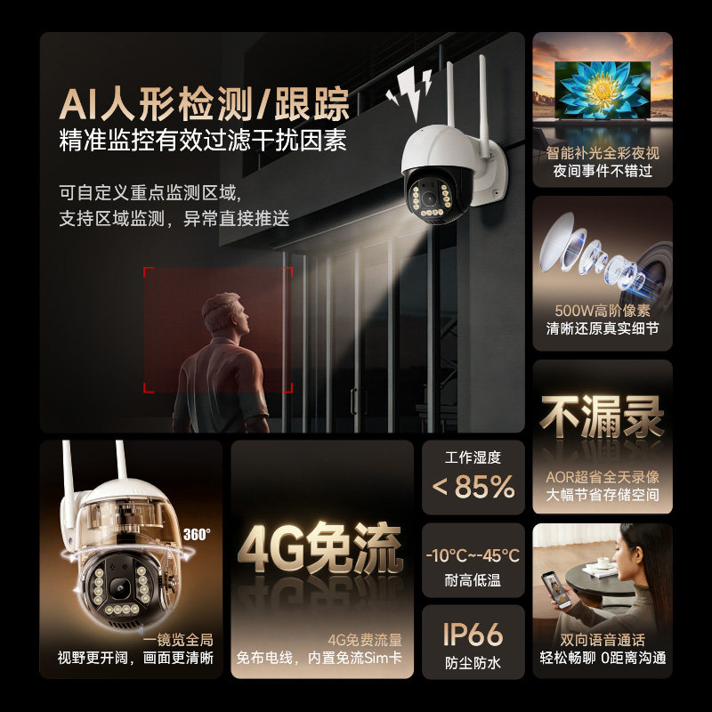 4G室外监控摄像头360度全景高清夜视农村室外专用免流量摄像球机