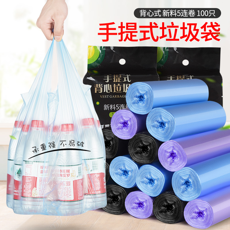 加厚手提背心垃圾袋卫生间家用黑色塑料袋点断厨房用中大号垃圾袋