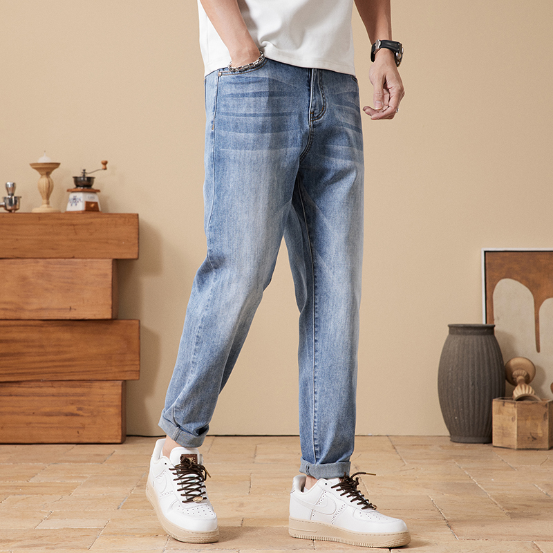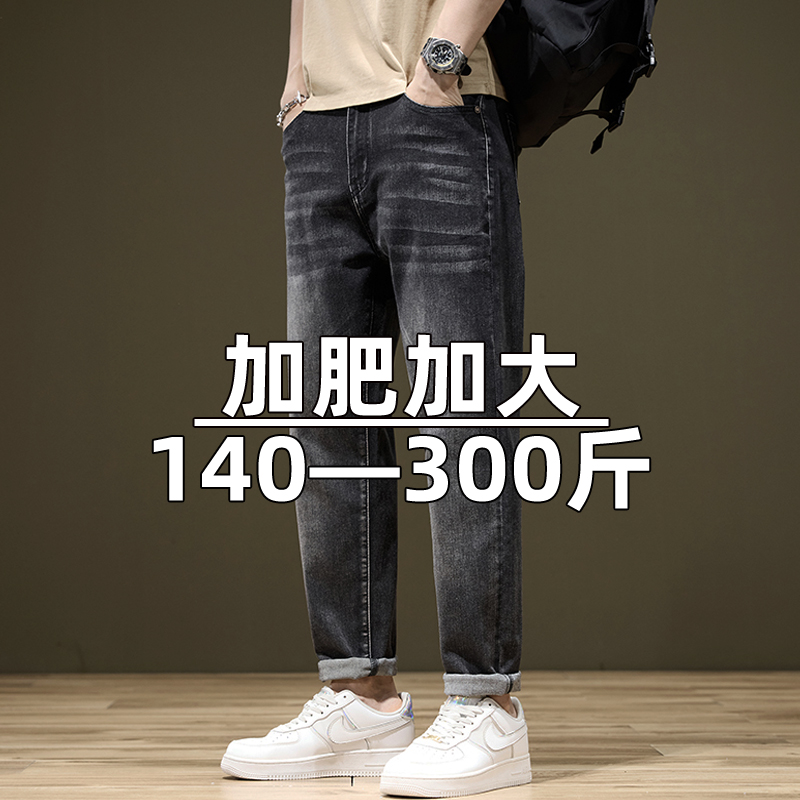 夏季薄牛仔裤男大码高弹力高腰宽松小脚裤锥形胖子加肥加大男裤潮
