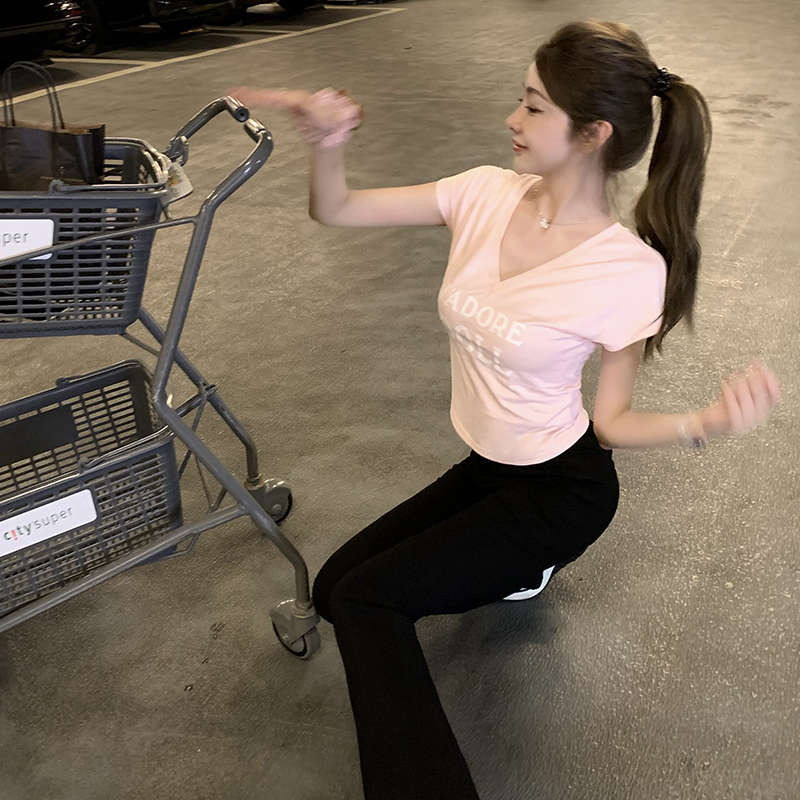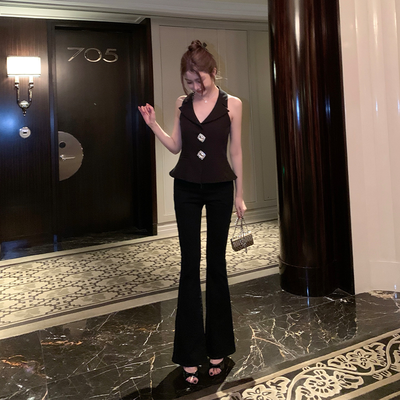 韩雨嘉水洗微喇牛仔裤女夏季新款高腰美式复古设计感修身显瘦长裤