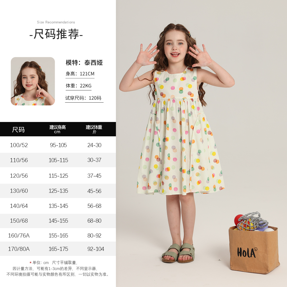 布丁哈鲁童装夏装女童长裙子2025夏季新款儿童彩色波点背心连衣裙