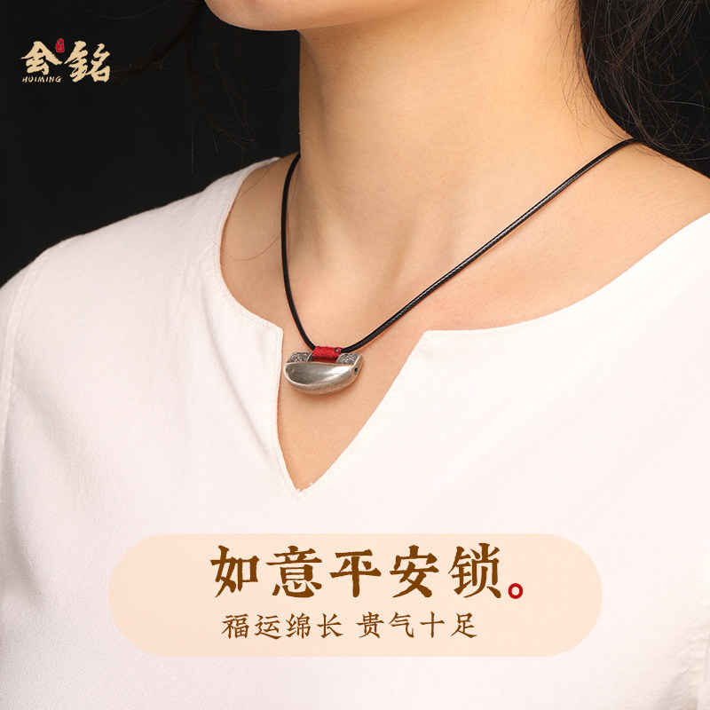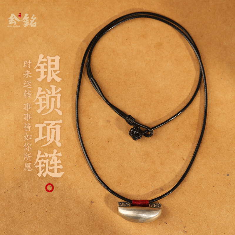 会铭手工坊925纯银长命锁项链毛衣链女吊坠编织纯银锁骨链可调节