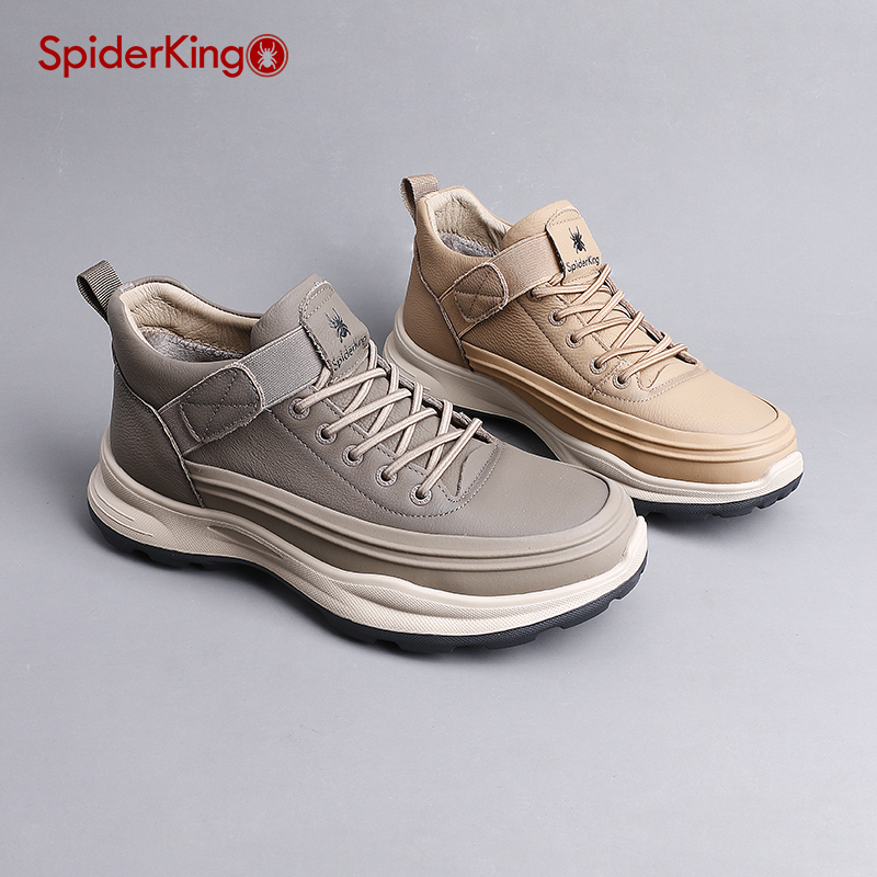 蜘蛛王男鞋真皮轻便超轻户外运动鞋2024冬季加绒保暖旅游鞋一脚蹬
