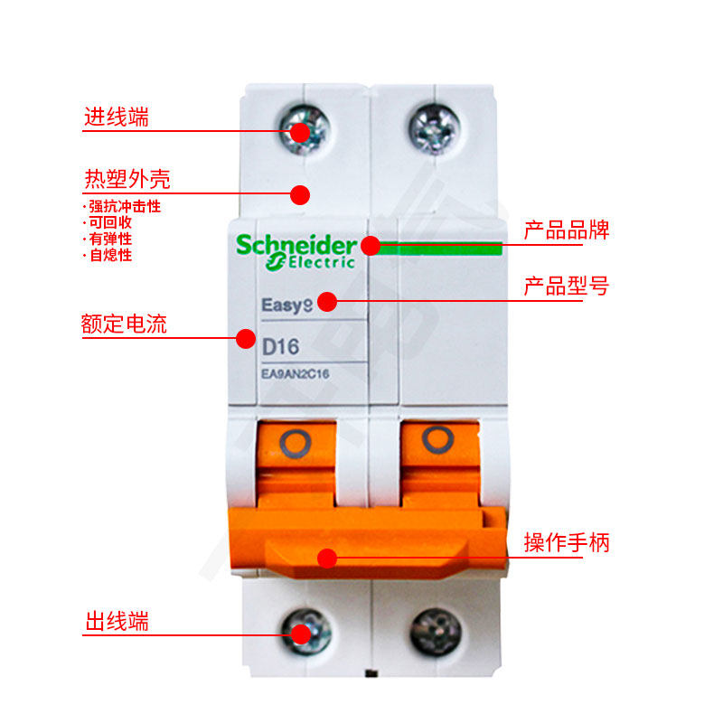 施耐德D型空气开关断路器EA9AN小型空开1P20A 16A-63A 2P3P4P可选