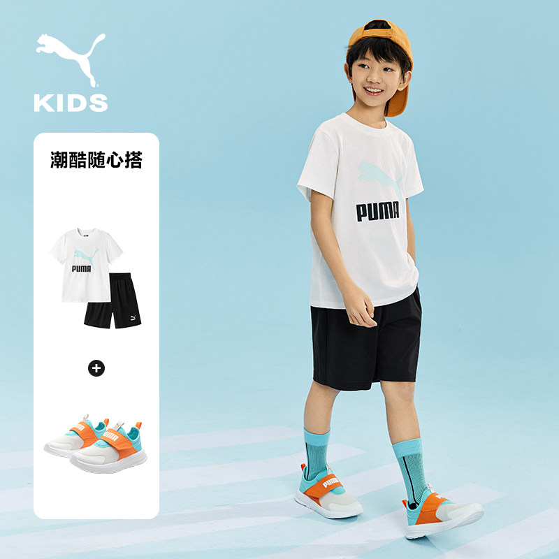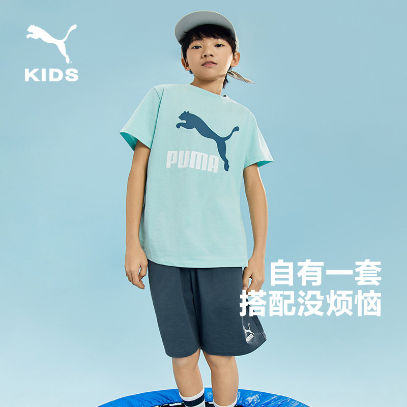 PUMA彪马女童短袖运动套装2025夏装新款中大童纯棉T恤短裤两件套9