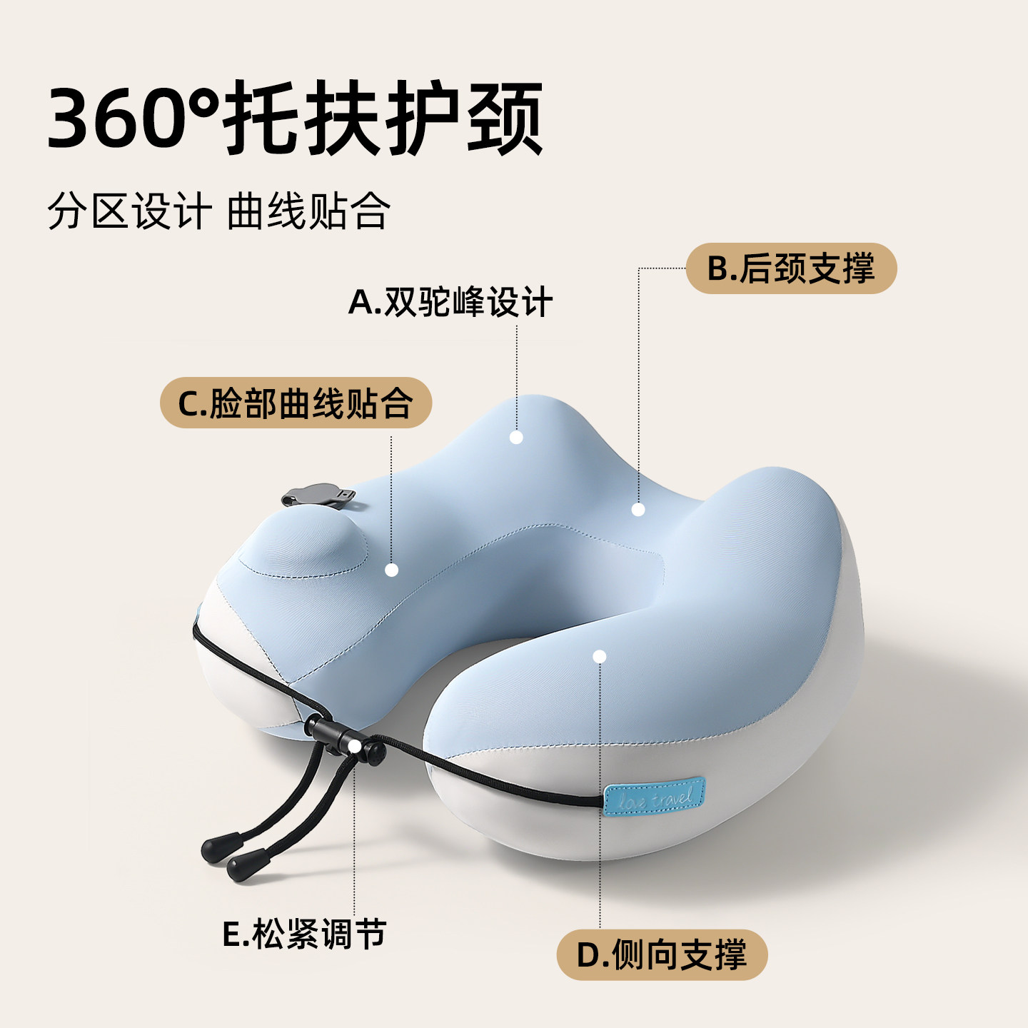 按压充气枕便携护颈u型枕旅行冰丝颈枕飞机高铁睡觉脖枕颈椎头枕