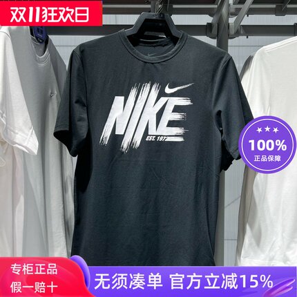 耐克男装2025夏季速干舒适透气训练运动短袖简约T恤衫 HV0382-010