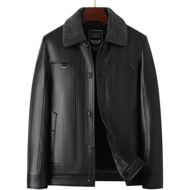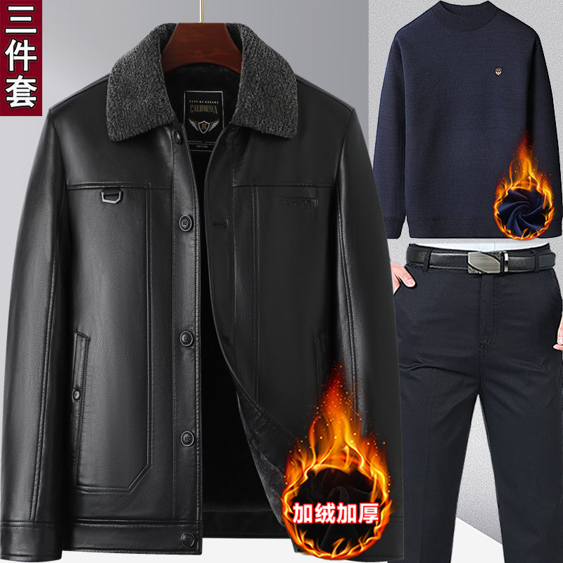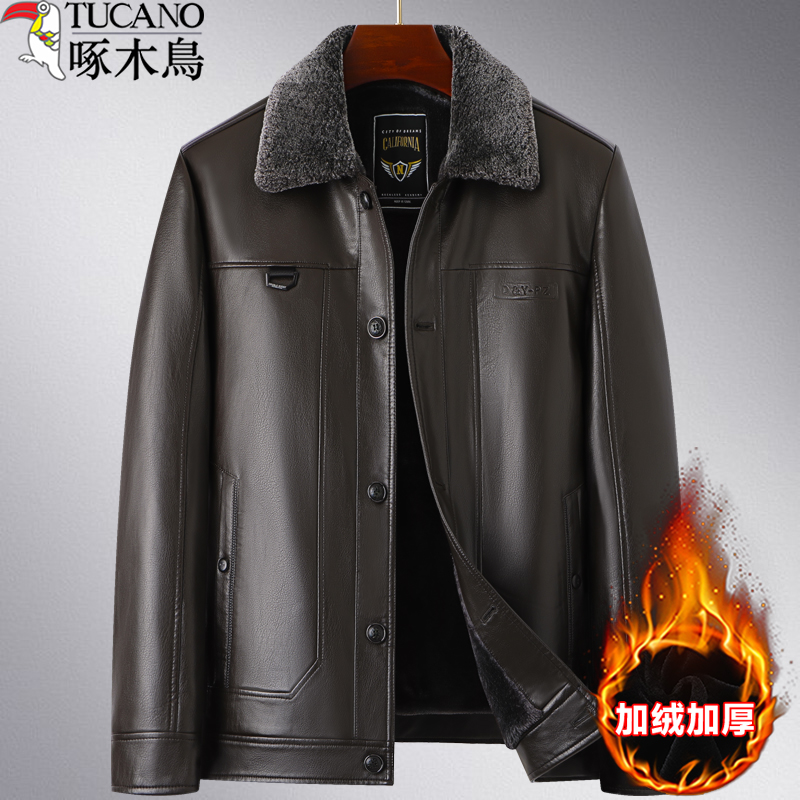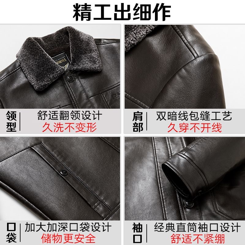 啄木鸟中老年人男士皮夹克秋冬加绒加厚款保暖爸爸装爷爷皮衣外套