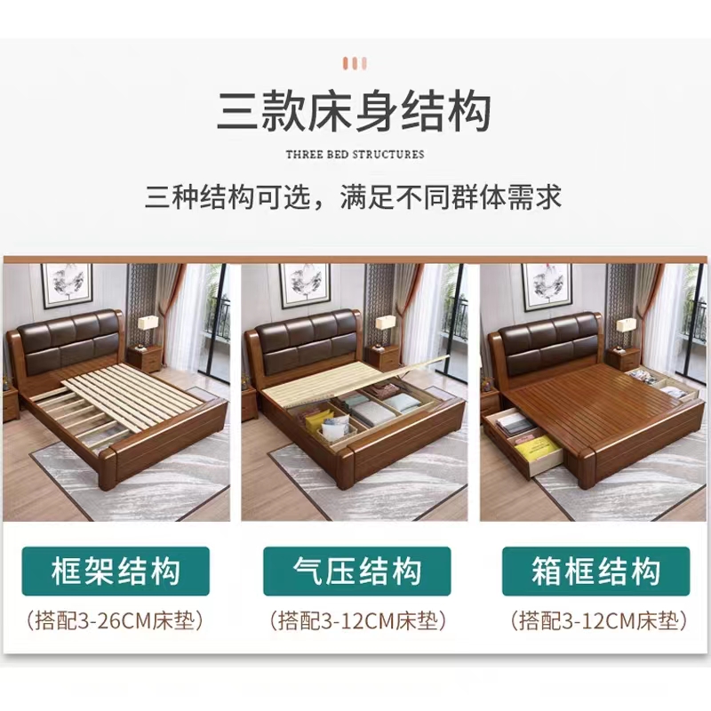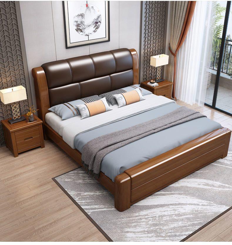 胡桃木新中式实木床双人床1.8米现代简约1.5软包主卧室储物经济型