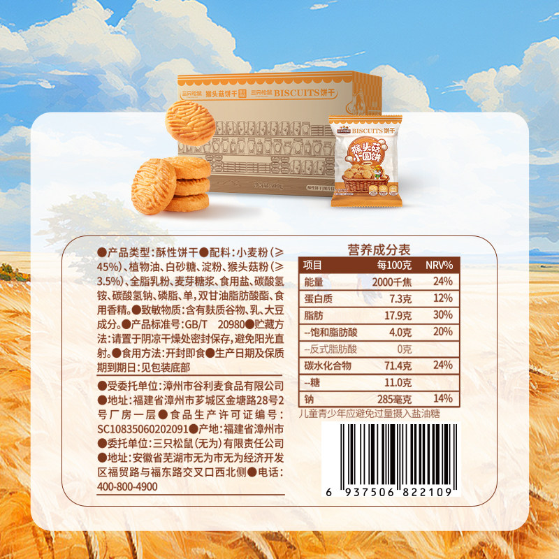 三只松鼠猴头菇小圆饼500g