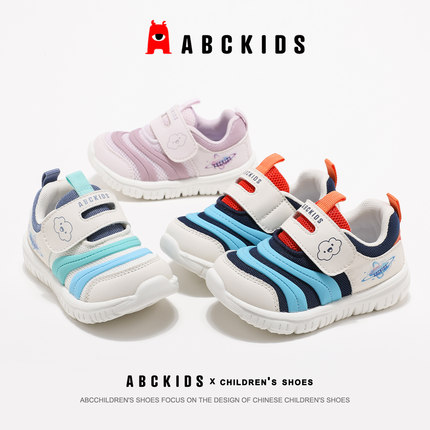Abckids童鞋毛毛虫鞋男童鞋2025秋季款女宝宝透气软底儿童运动鞋