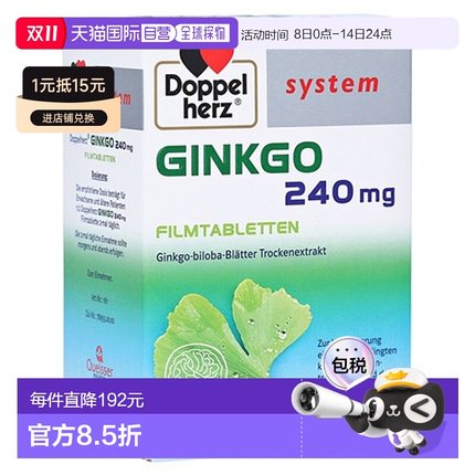 欧洲直邮德国双心Doppelherz药店版银杏提取液240健脑银杏片120粒