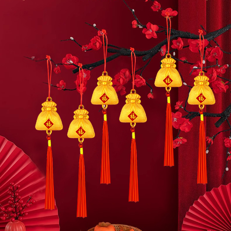 2026新年装饰品挂饰新居乔迁盆栽绿植吊卡小挂件春节客厅银柳布置