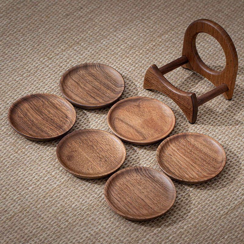 垫茶杯杯茶杯垫胡桃木隔热创意家用杯茶道套装垫垫咖啡木质