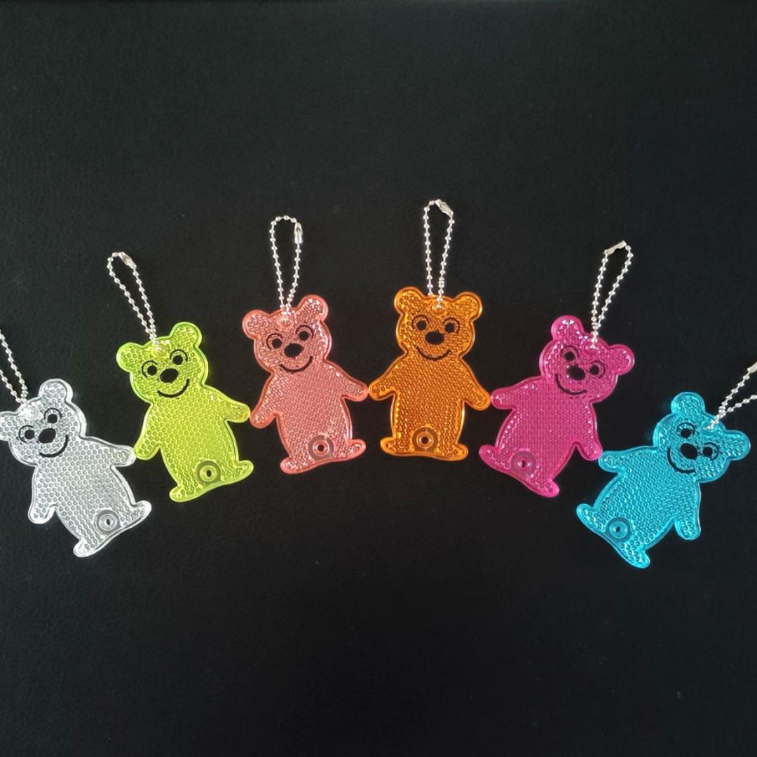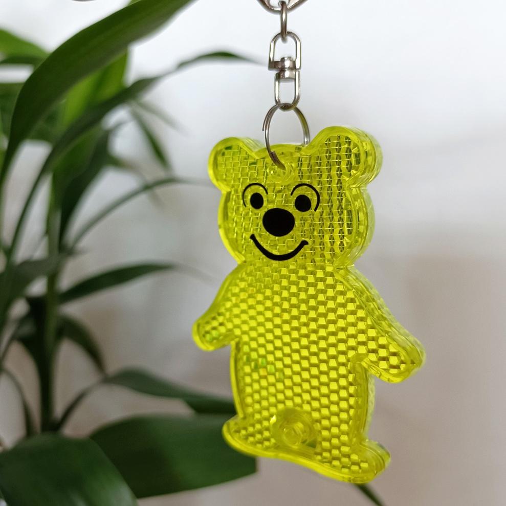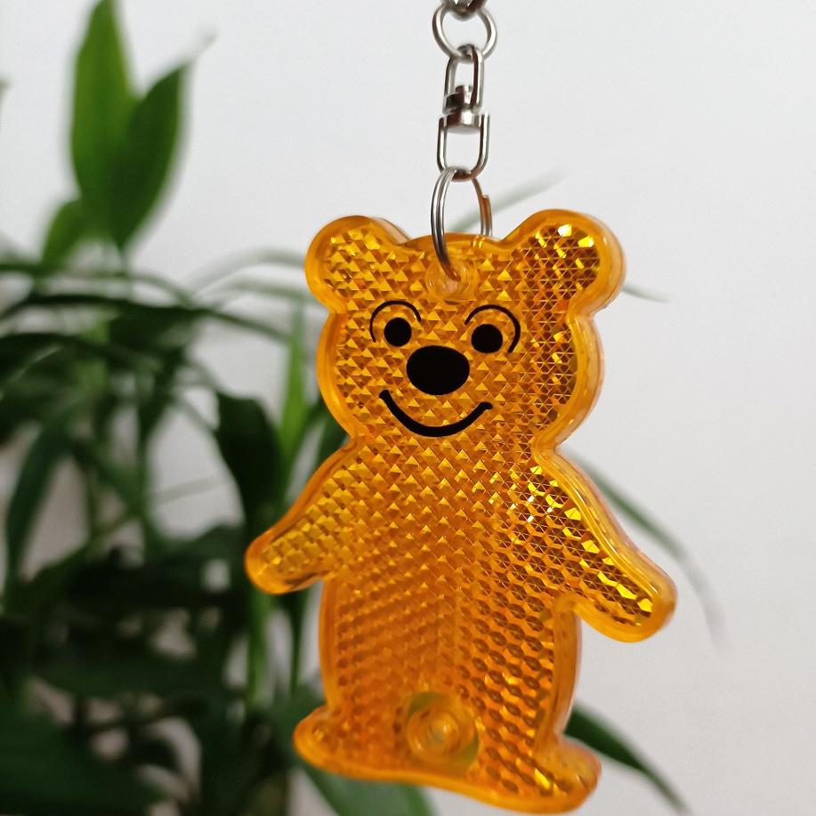 进口亚克力双面反光小熊步行骑行反射器,儿童书包高亮反光挂件