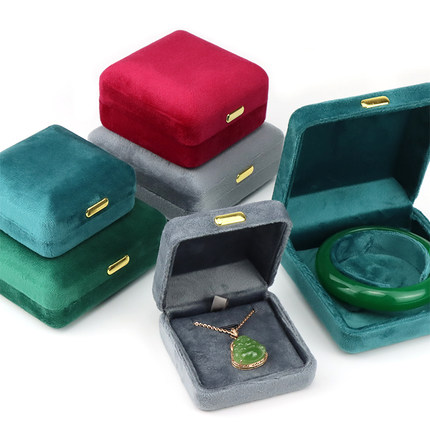 丝绒珠宝首饰盒金属贴片吊坠手镯小手串玉器饰品包装收纳植绒盒子