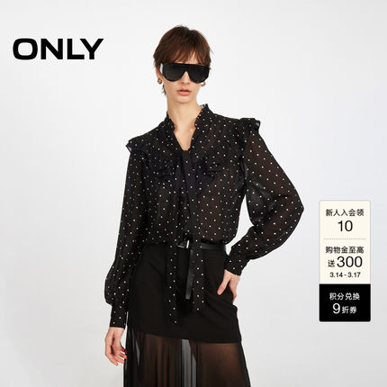 ONLY2026春季新款复古波点飘带系带肩线拼接花边雪纺衬衫上衣女