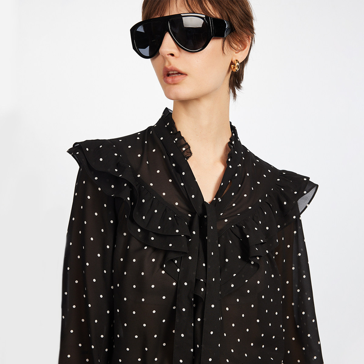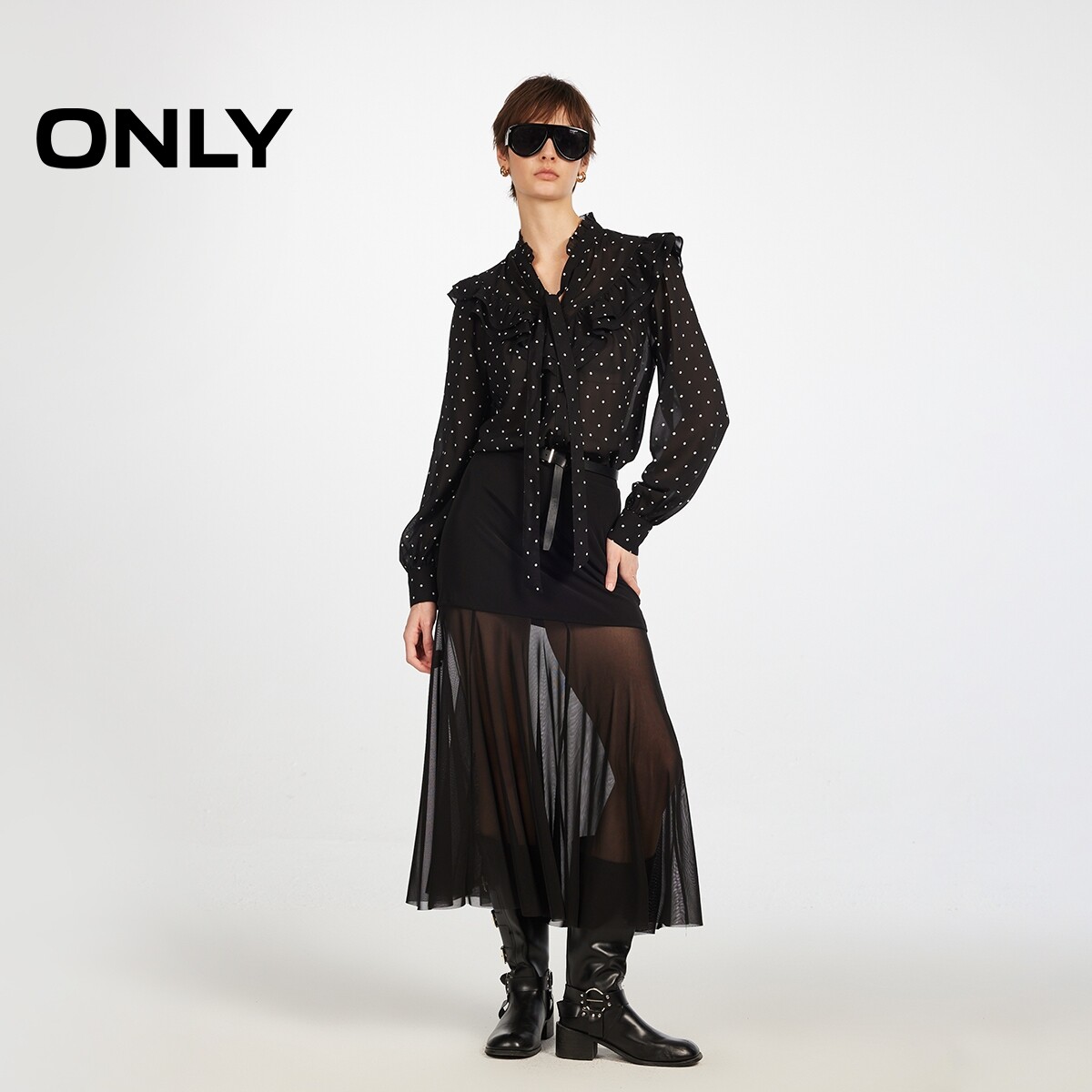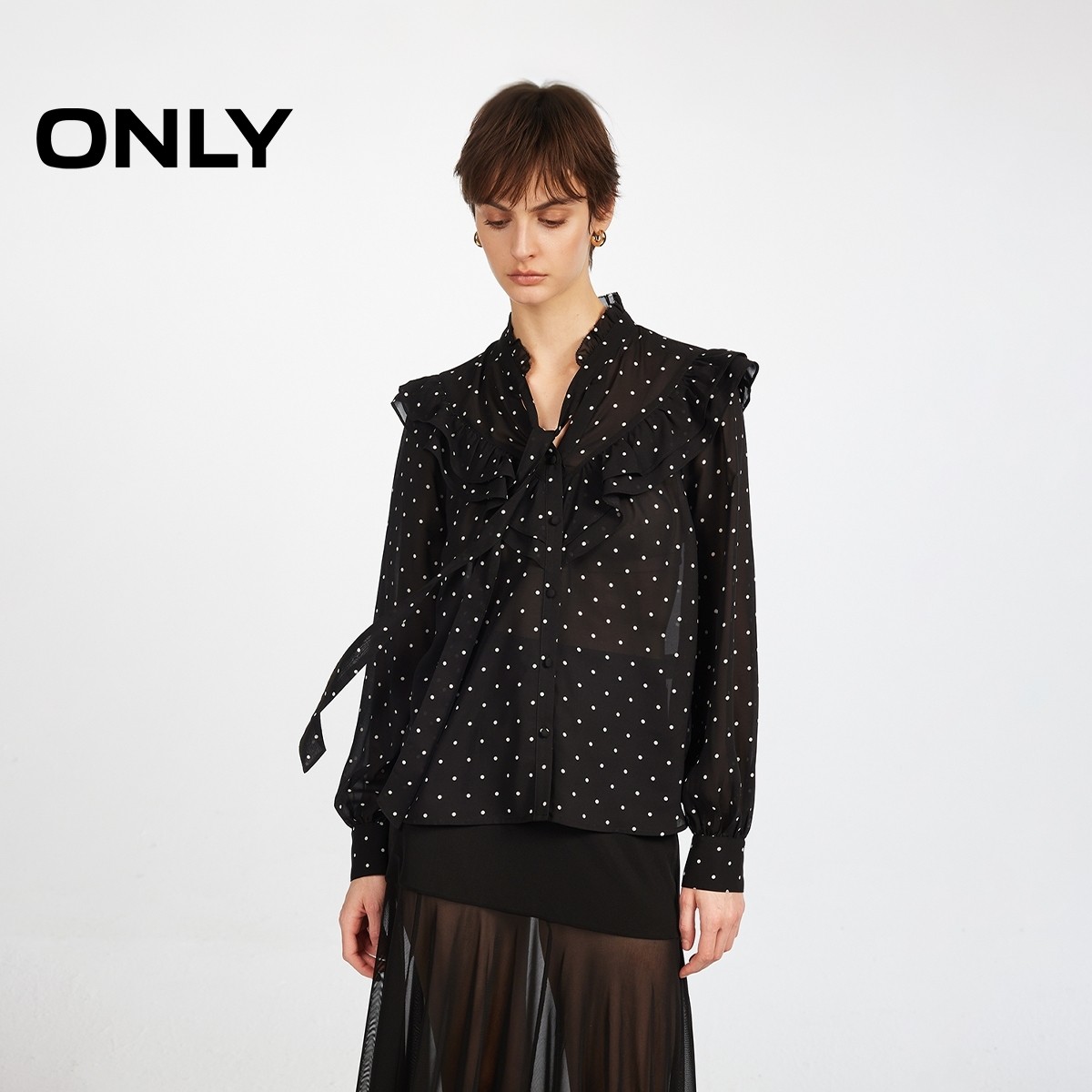 ONLY波点飘带系带衬衫