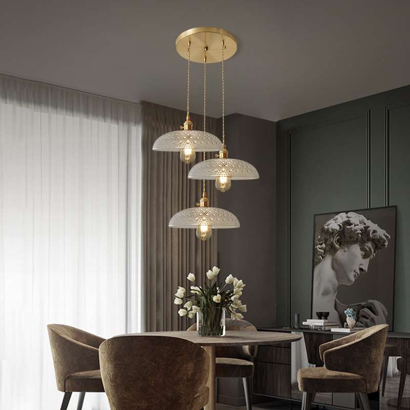 全铜美式轻奢简约现代水晶吊灯餐厅灯吧台三头饭厅大厅灯具可混搭