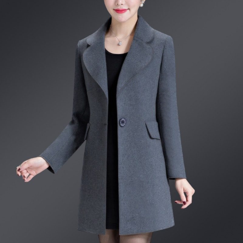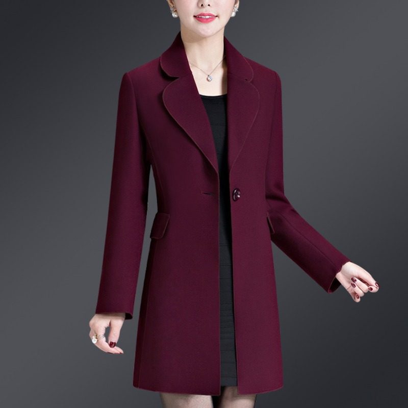 贵夫人西装领羊绒呢子外套女小个子妈妈中长款收腰显瘦毛呢大衣