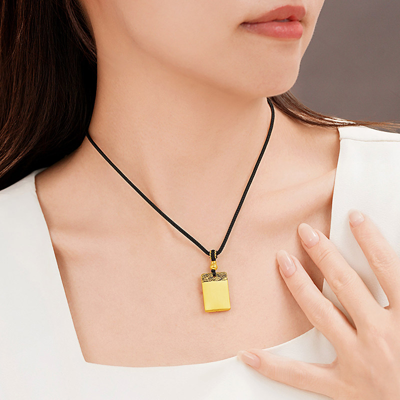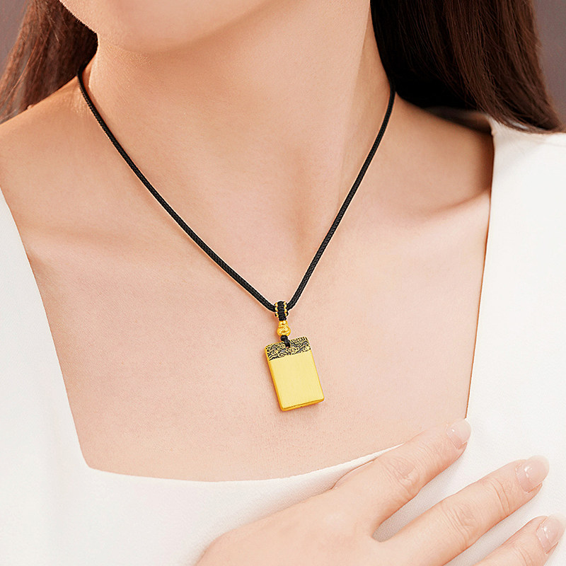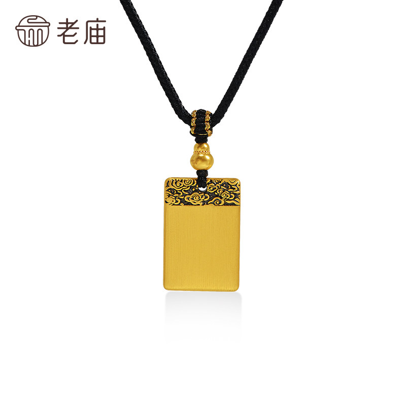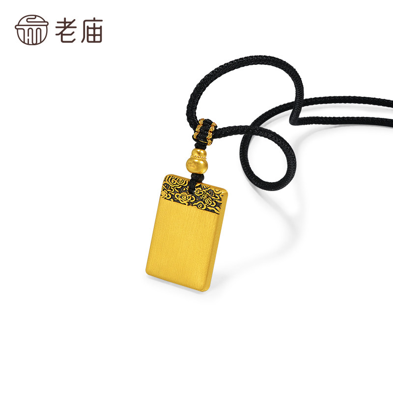 老庙黄金足金平安无事牌挂坠5D精致祥云纹立体平安顺遂简约福运