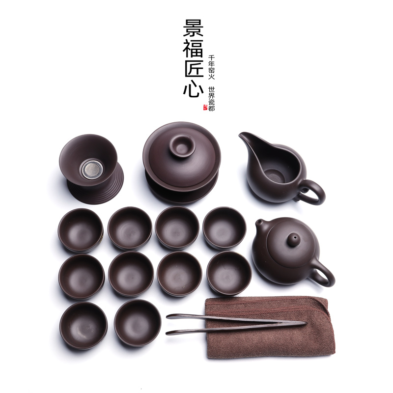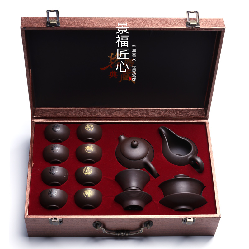 景福匠心西施壶紫砂功夫茶具套装礼盒礼品定制LOGO整套宫廷风中式