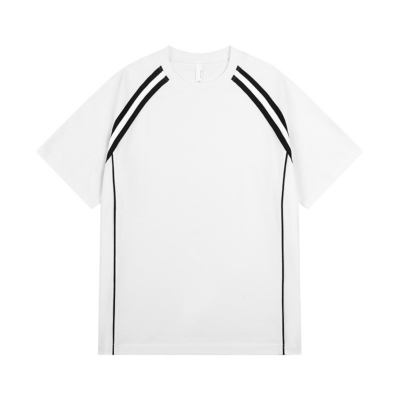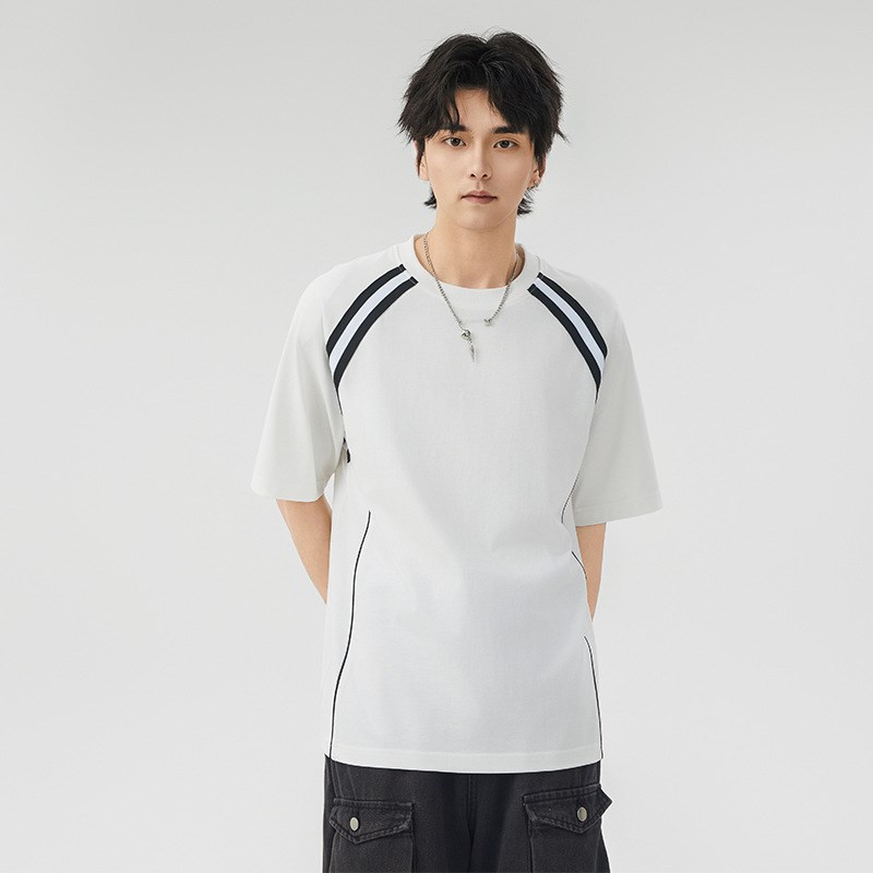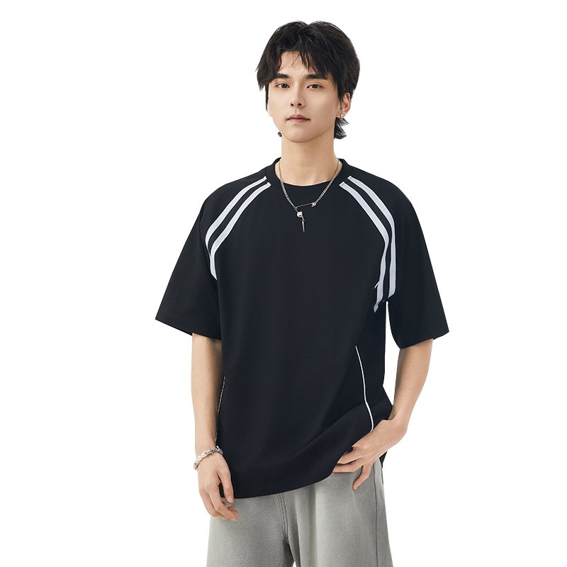 夏季清凉短袖T恤男两条杠复古潮流条纹运动休闲半袖打底衫男装ins