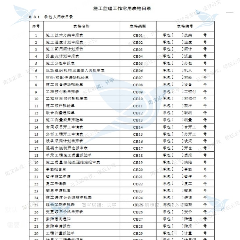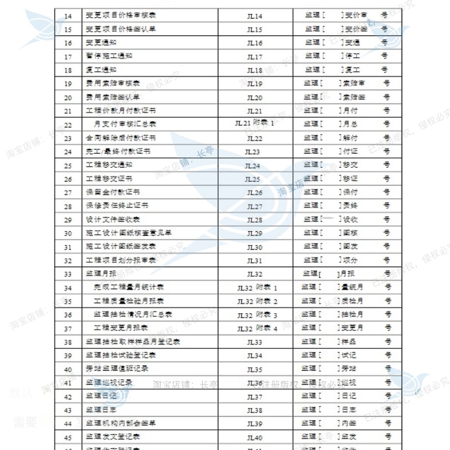 施工监理工作常用表格监理规范附表相关方案监理表格施工方案规