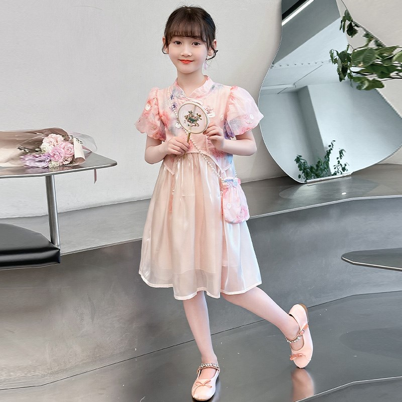 女童国风新中式夏季汉服连衣裙2024新款中大儿童古风唐装公主裙子
