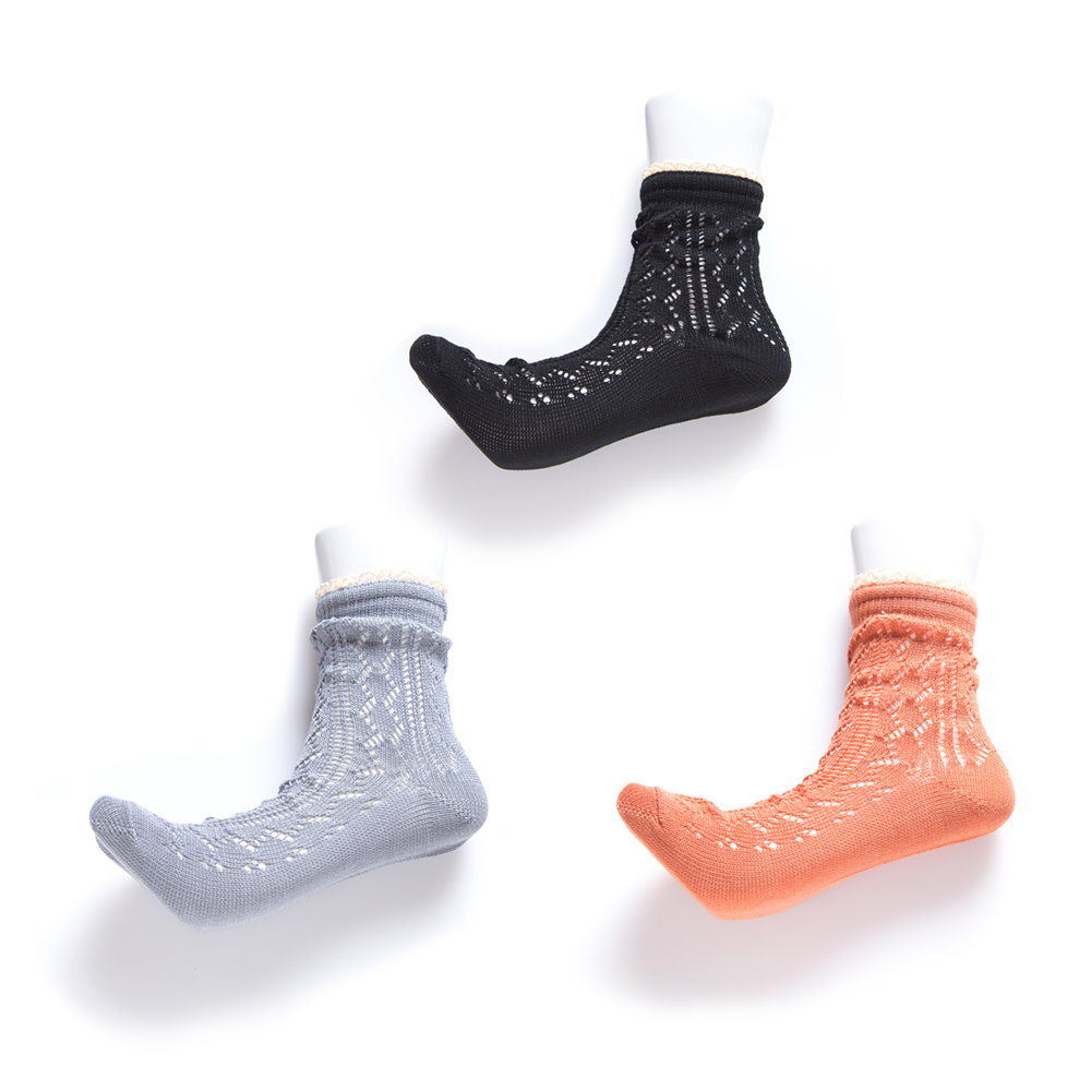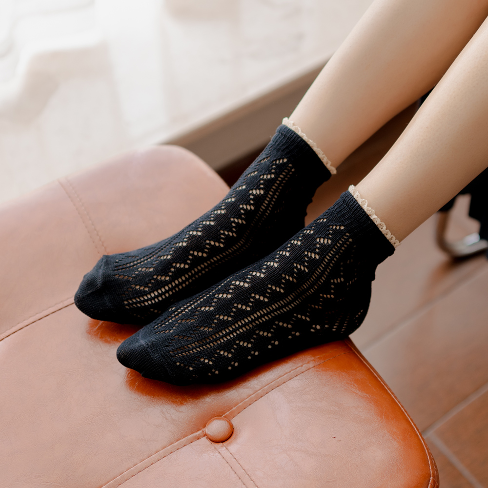 钱小姐高品质春夏薄款百棉女士袜子镂空高含棉百搭小蕾丝装饰出口