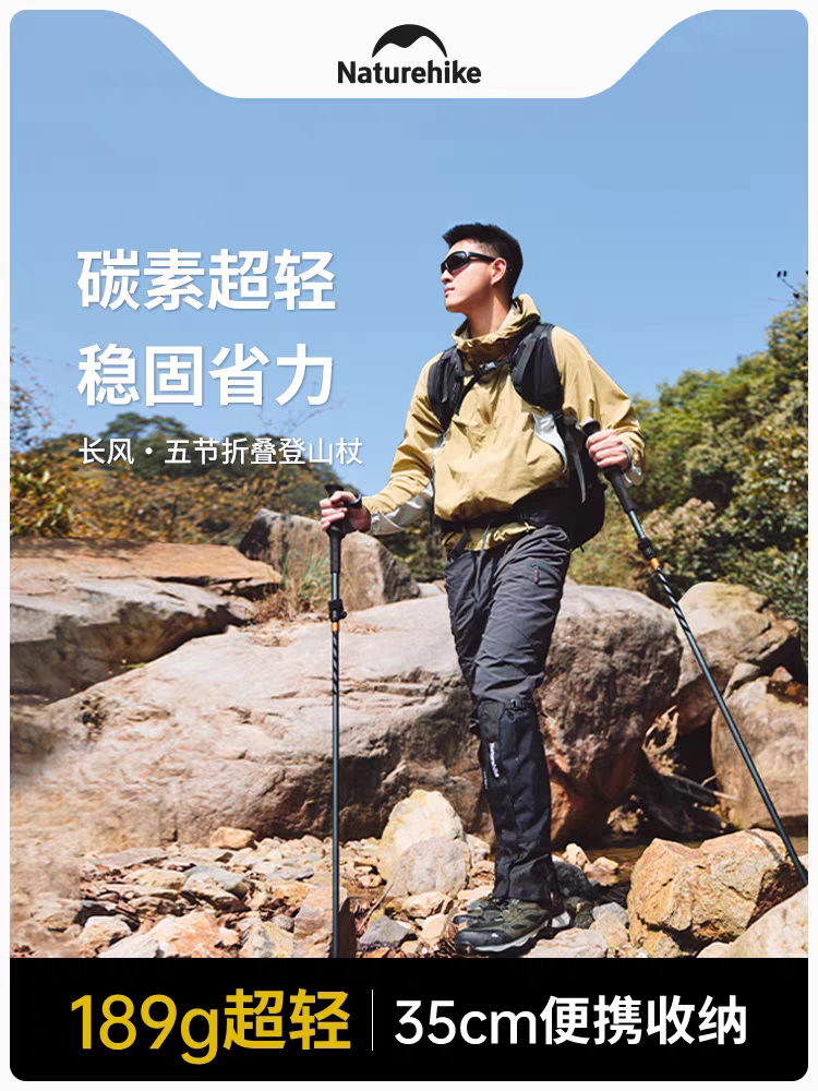 【长风】挪客五节折叠碳纤维登山杖专业户外徒步手杖超轻碳素男女