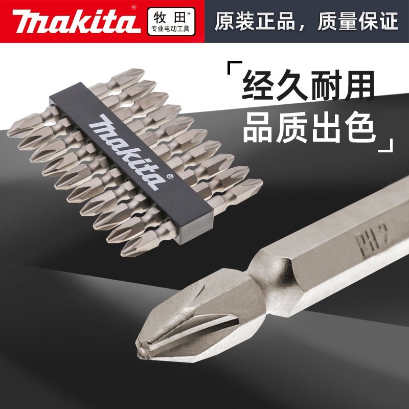 Makita日本牧田电动螺丝刀批头起子头加长十字双头强磁风批头PH2
