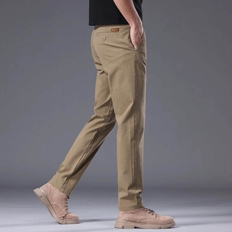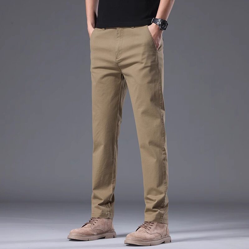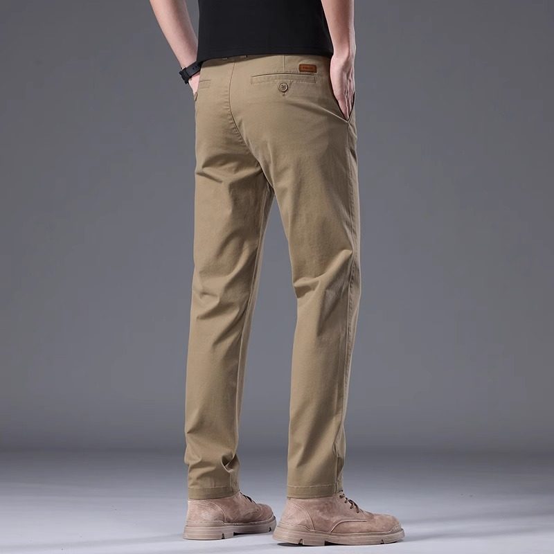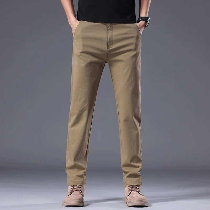 香港高端秋季新款男士卡其色轻奢休闲裤宽松直筒商务时尚百搭修身