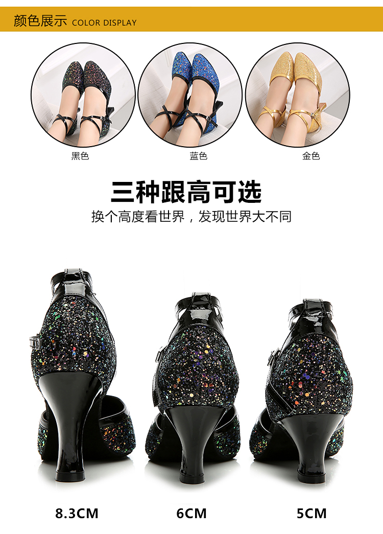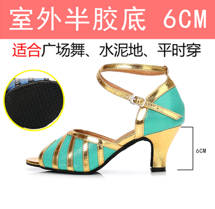 2024新款拉丁舞鞋女广场舞舞蹈鞋中高跟交谊跳舞女鞋室外秋冬凉鞋
