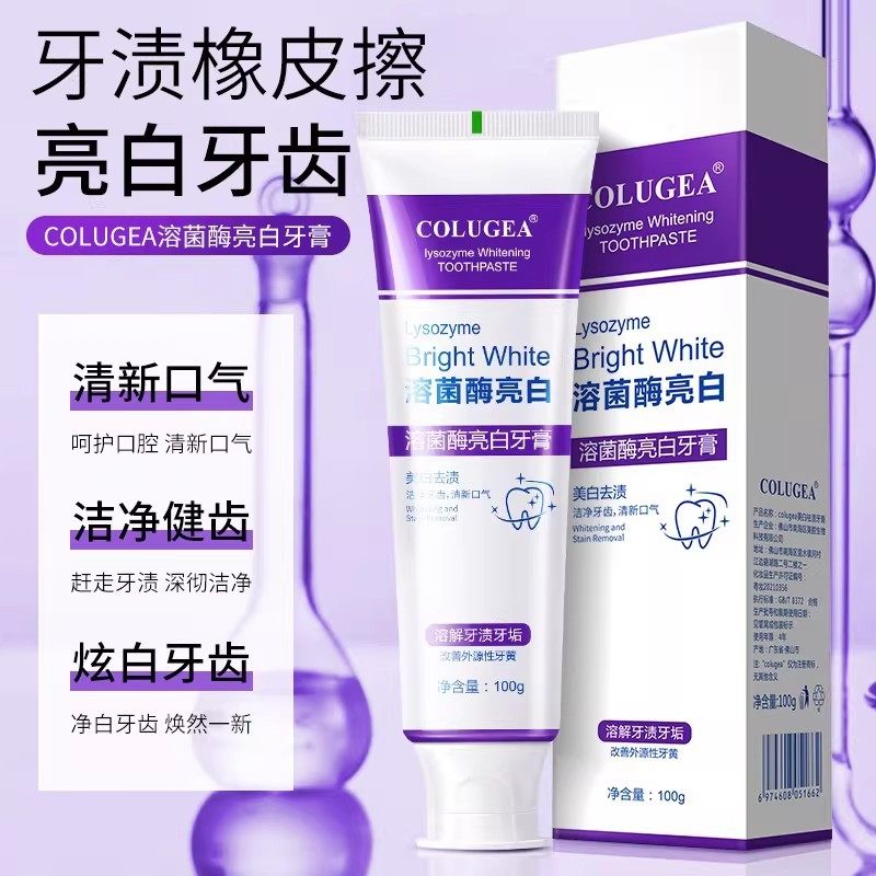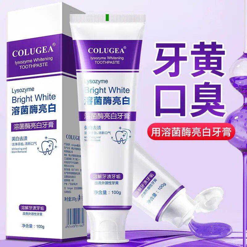 溶菌酶亮白牙膏美白清新口气去烟渍去黄炫白家庭洁牙口腔抑菌牙膏