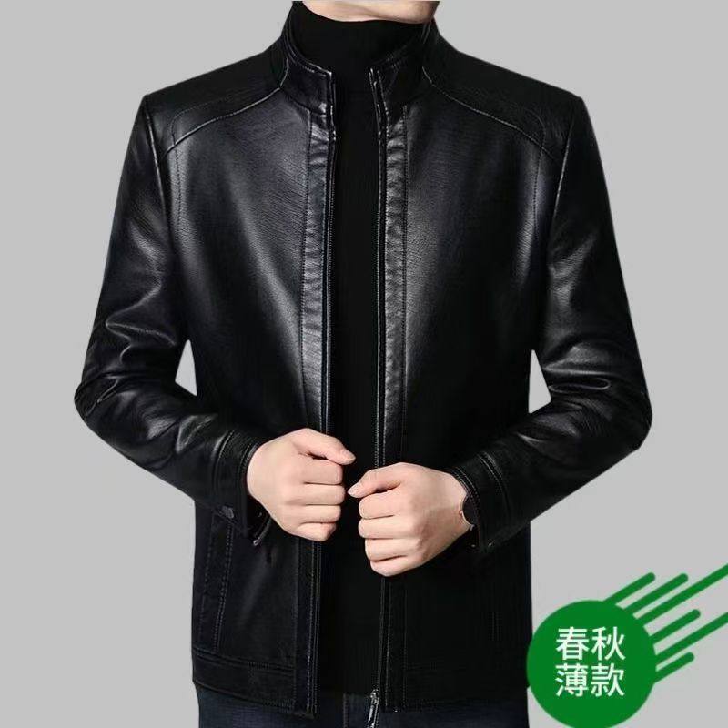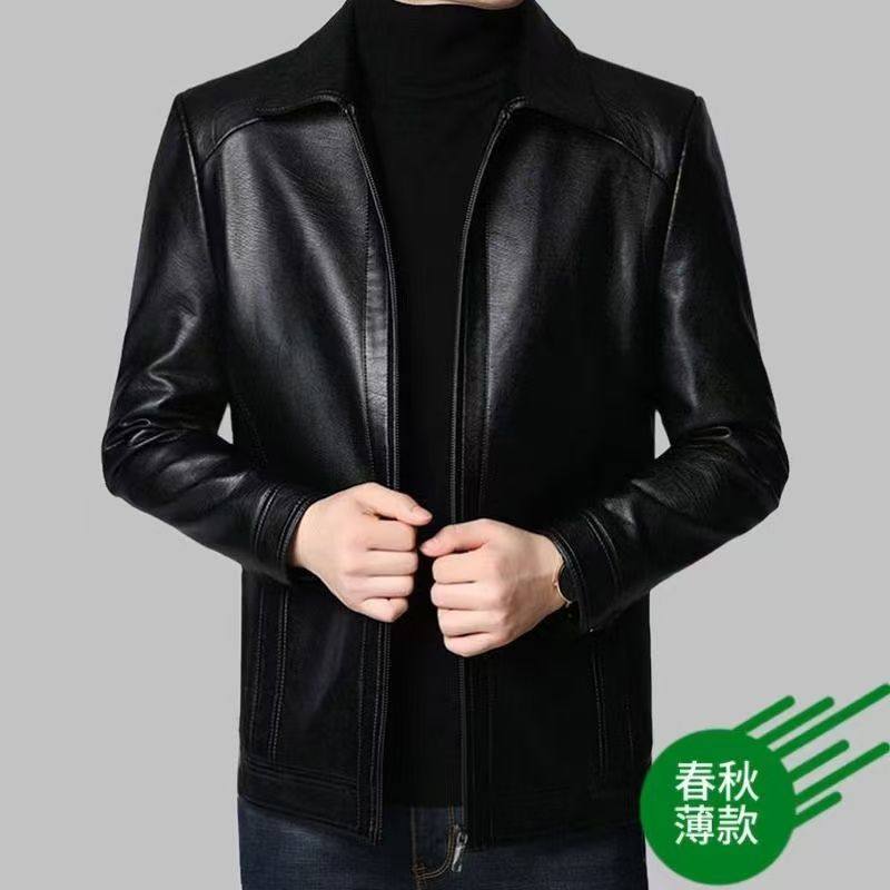 海宁男士软皮皮衣高档外套中老年宽松大码爸爸装加绒/薄款皮夹克