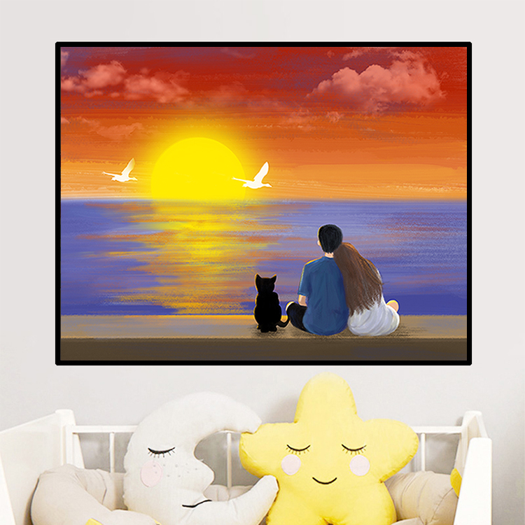 海边情侣钻石画2025新款 手工diy贴钻十字绣客厅卧室温馨粘钻满钻