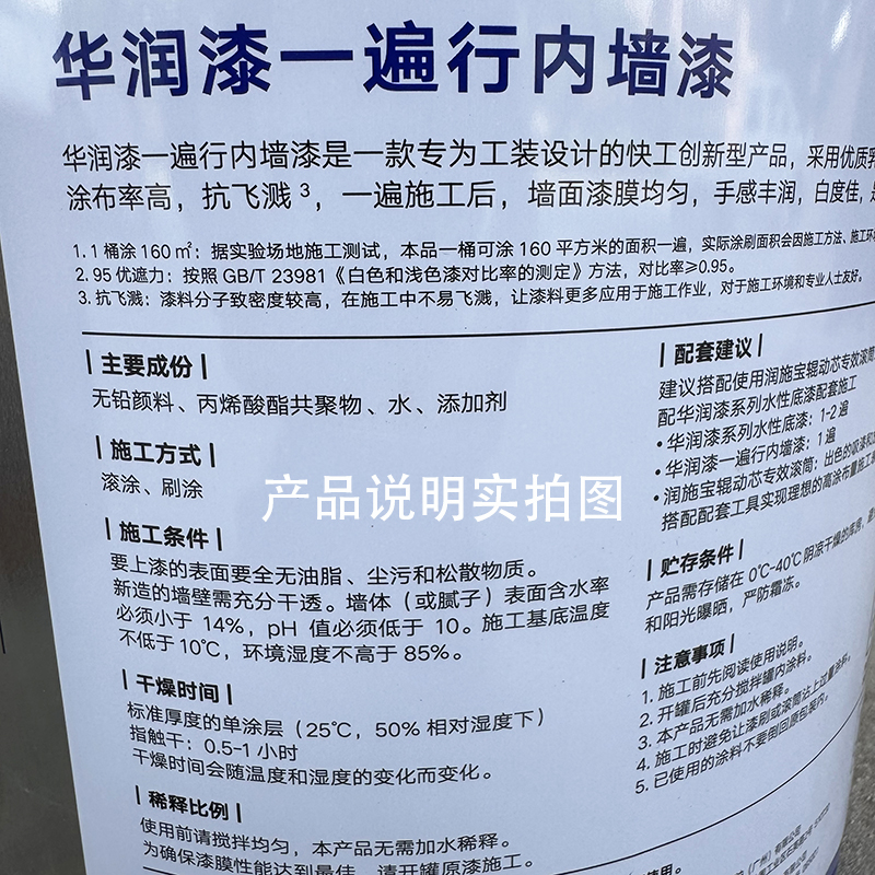 华润一遍行内墙乳胶漆净味家装漆防霉抗碱家用超白墙面漆环保白色