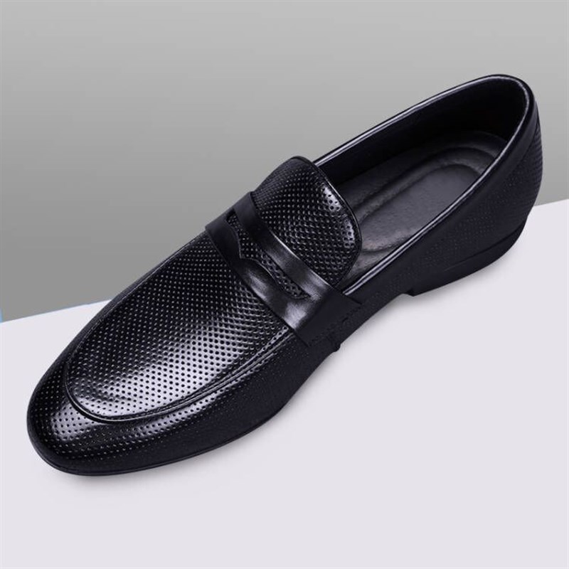 休闲男皮鞋男鞋一脚蹬新款打孔凉鞋休闲皮鞋商务镂空亮面男士皮鞋